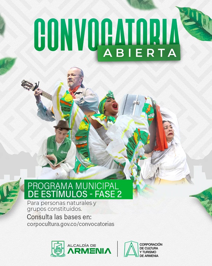La Alcaldía de Armenia y la Corporación de Cultura y Turismo de Armenia anunciaron la apertura de la convocatoria pública del Programa Municipal de Estímulos – Fase 2, que cuenta con una bolsa de 320 millones de pesos destinados a apoyar el talento local.