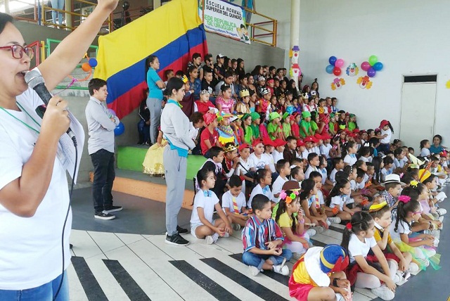 Desde hace tres años en la sede República de Uruguay de la Escuela Normal Superior del Quindío, ubicada en el Barrio Popular, niños de los grados transición a cuarto de primaria hacen parte del Proyecto de Bilingüismo que busca intensificar la enseñanza del idioma inglés a través de diferentes áreas y competencias. En el 2019 son 150 niños y niñas que hacen parte de esta estrategia que, en su marco, realiza anualmente el Festival de Rondas y Canciones, al que asisten además otras instituciones con el mismo interés.