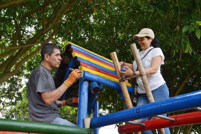 Bajo el liderazgo de la Alcaldía de Armenia, la Junta de Acción Comunal y los vecinos del barrio El Recreo se sumaron al programa Todos Ponemos que coordina la Asesoría Social y Comunitaria. Juntos, en un acto de corresponsabilidad cívica, funcionarios y habitantes del sector instalaron juegos infantiles nuevos, pintaron las estructuras y decoraron las llantas que desde este fin de semana adornan el lugar.