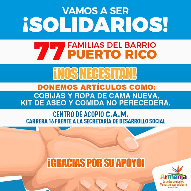 “Las personas que permanezcan en el escenario deportivo recibirán alimentos preparados para mayor seguridad” precisó el secretario, quien hizo un llamado a los armenios para que se solidaricen con las cerca de 136 personas damnificadas, llevando donaciones en especie como alimentos no perecederos, ropa de cama y cobijas nuevas y kits de aseo.