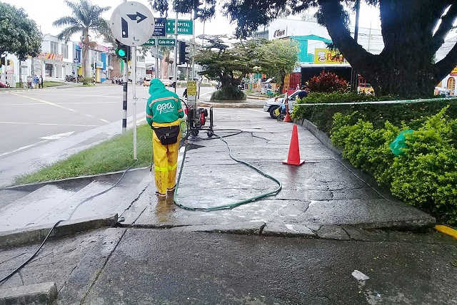 Un plan de atención integral adelanta Empresas Públicas de Armenia en los parques Los Fundadores y Sucre con su equipo de poda de árbol y lavado de espacios colectivos de ciudad.