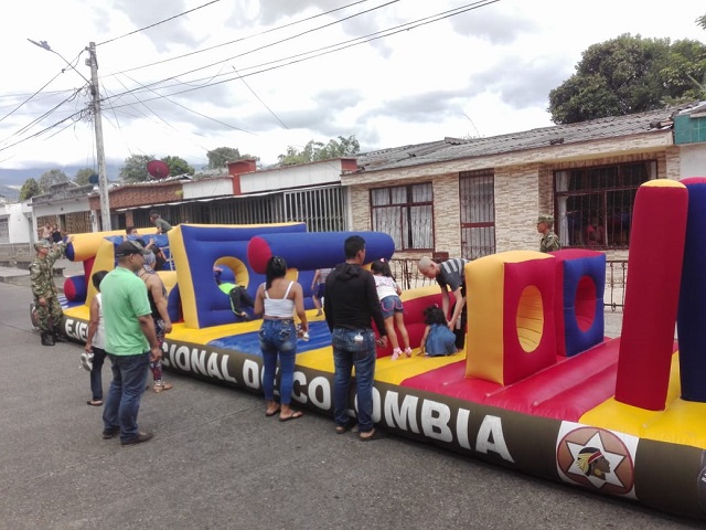 Durante la jornada se contó con la colaboración del Ejercito Nacional que llevó la ciudadela inflable para el disfrute de los niños del sector. Con el programa de Comisaria en Casa se hizo un recorrido puerta a puerta dando a conocer todos los servicios que se ofrece con este programa para facilitar la convivencia familiar y vecinal.