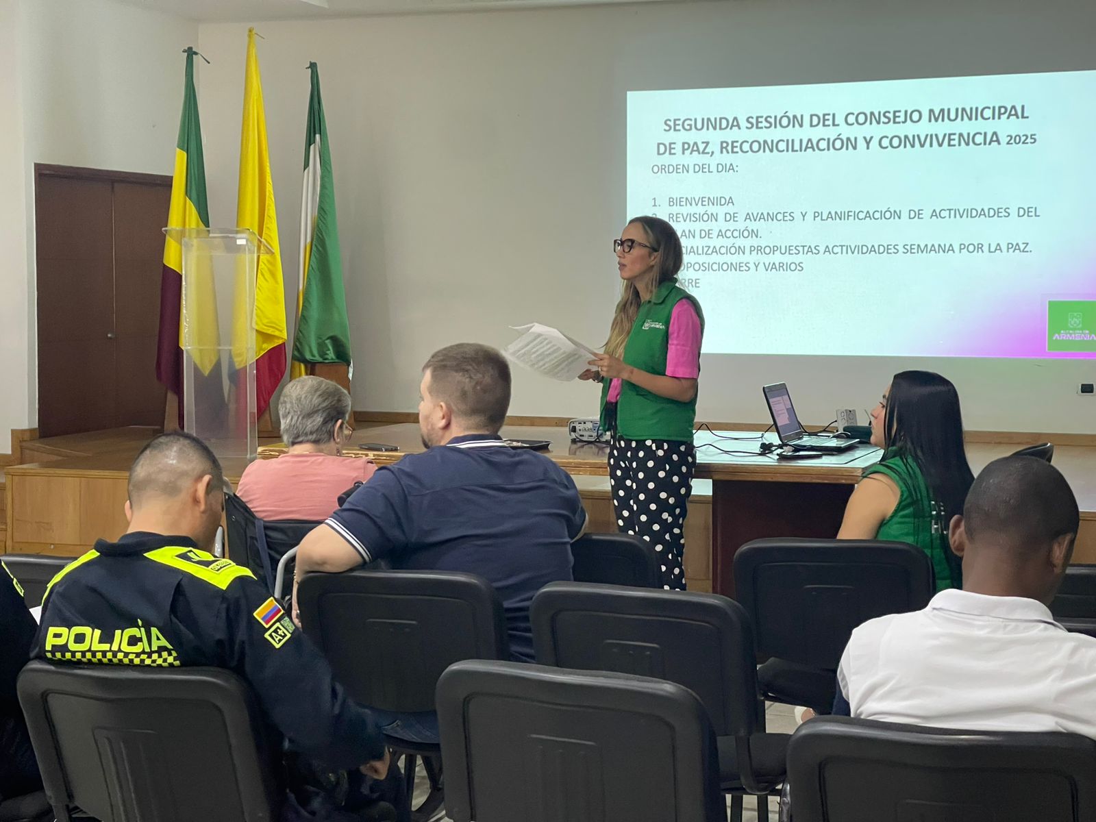 Durante la segunda sesión de este consejo se revisaron los avances del plan de acción, entre ellos capacitaciones en resolución de conflictos en instituciones educativas, talleres de liderazgo democrático para ediles y líderes sociales, y jornadas de prevención de delitos como la trata de personas y la instrumentalización de jóvenes en grupos armados.